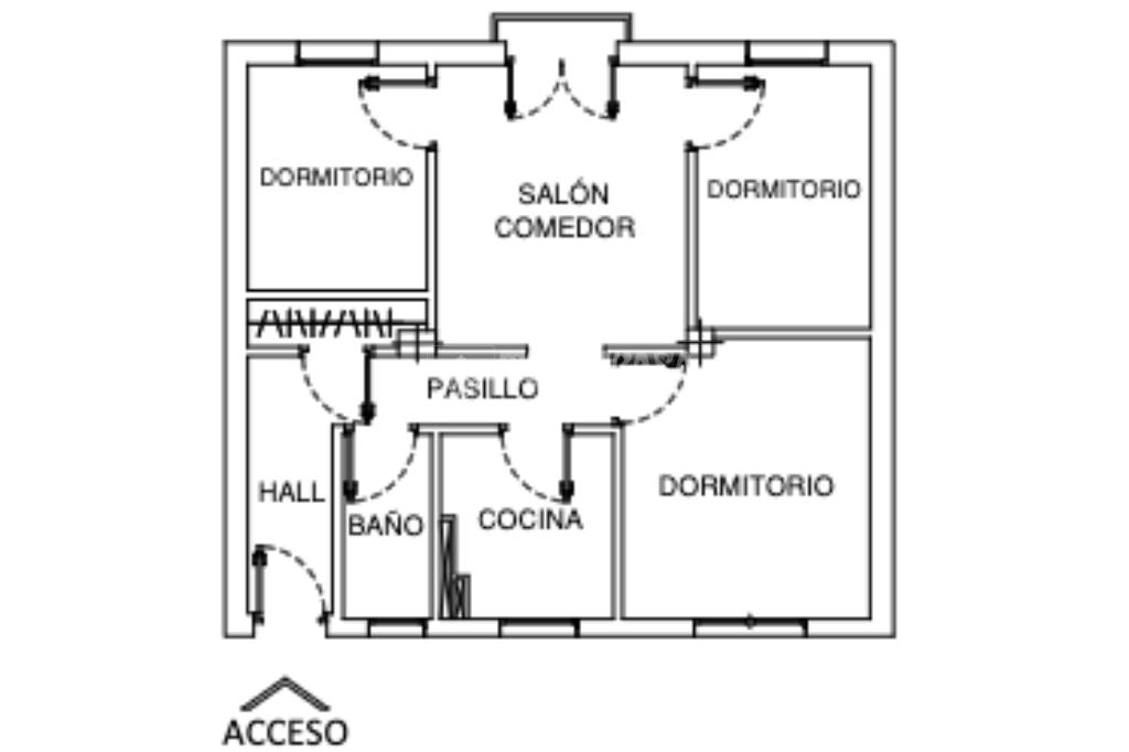 AÑADIMOS AL ANUNCIO UN PLANO DE LA DISTRIBUCION ACTUAL DEL PISO Y ALGUNAS IDEAS DE REFORMA.